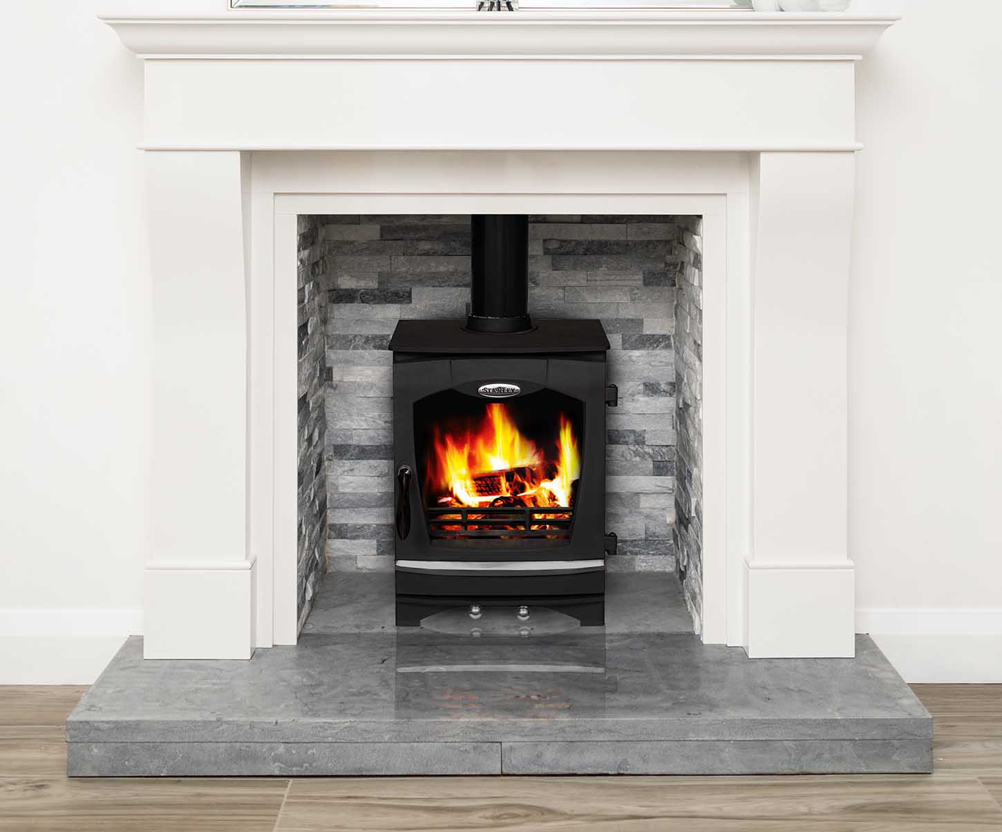 Stanly Solis I5 Cassette, High End Stove.  Complete Marble Fireplace, Chimney Lining and Installation Parts. Normally €4850.00 Now Only €3800 saving up to €1050.00 Choose from 20 different fireplace surrounds and let us know.
