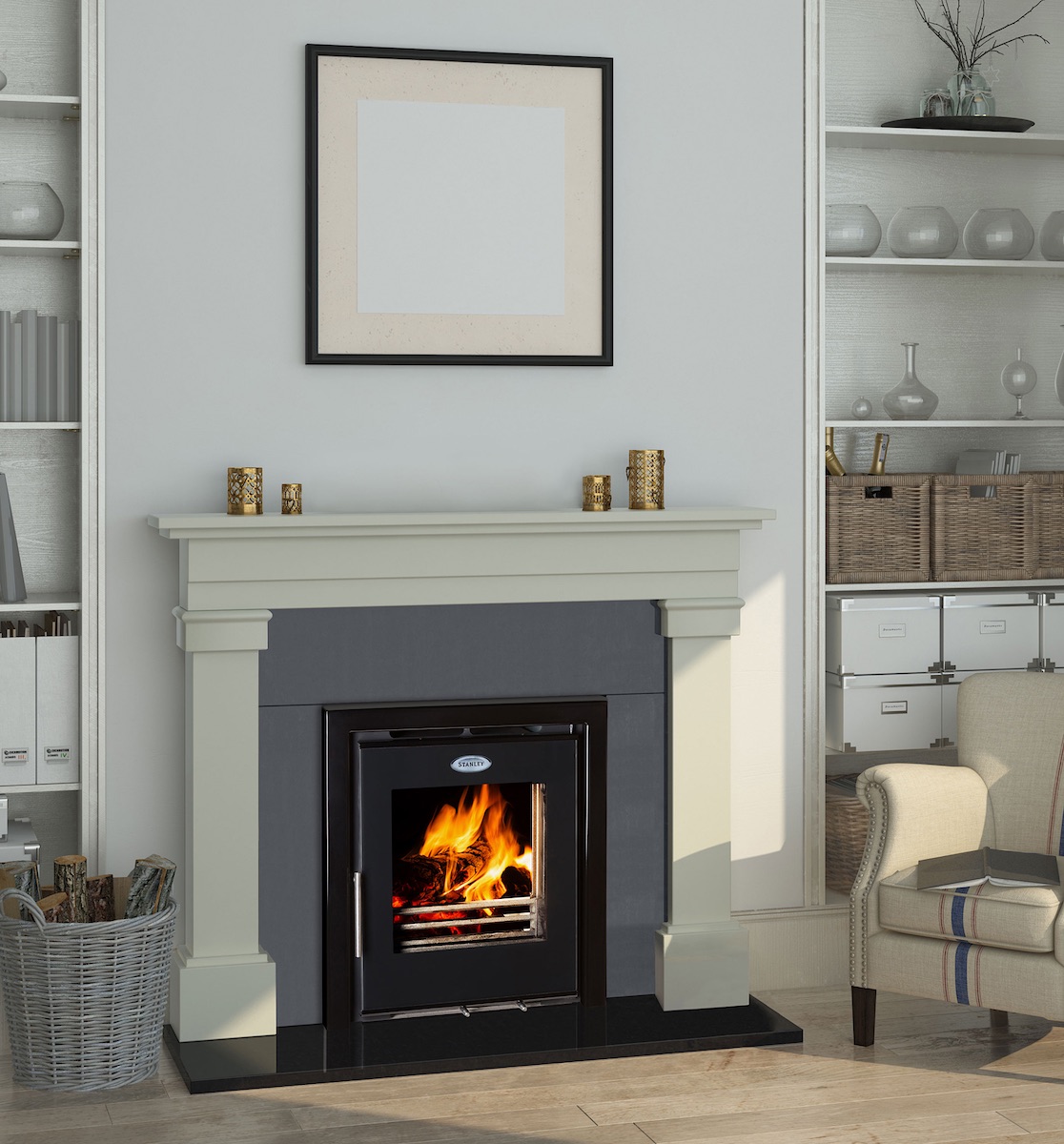Stanly Solis I5 Cassette, High End Stove.  Complete Marble Fireplace, Chimney Lining and Installation Parts. Normally €4850.00 Now Only €3800 saving up to €1050.00 Choose from 20 different fireplace surrounds and let us know.