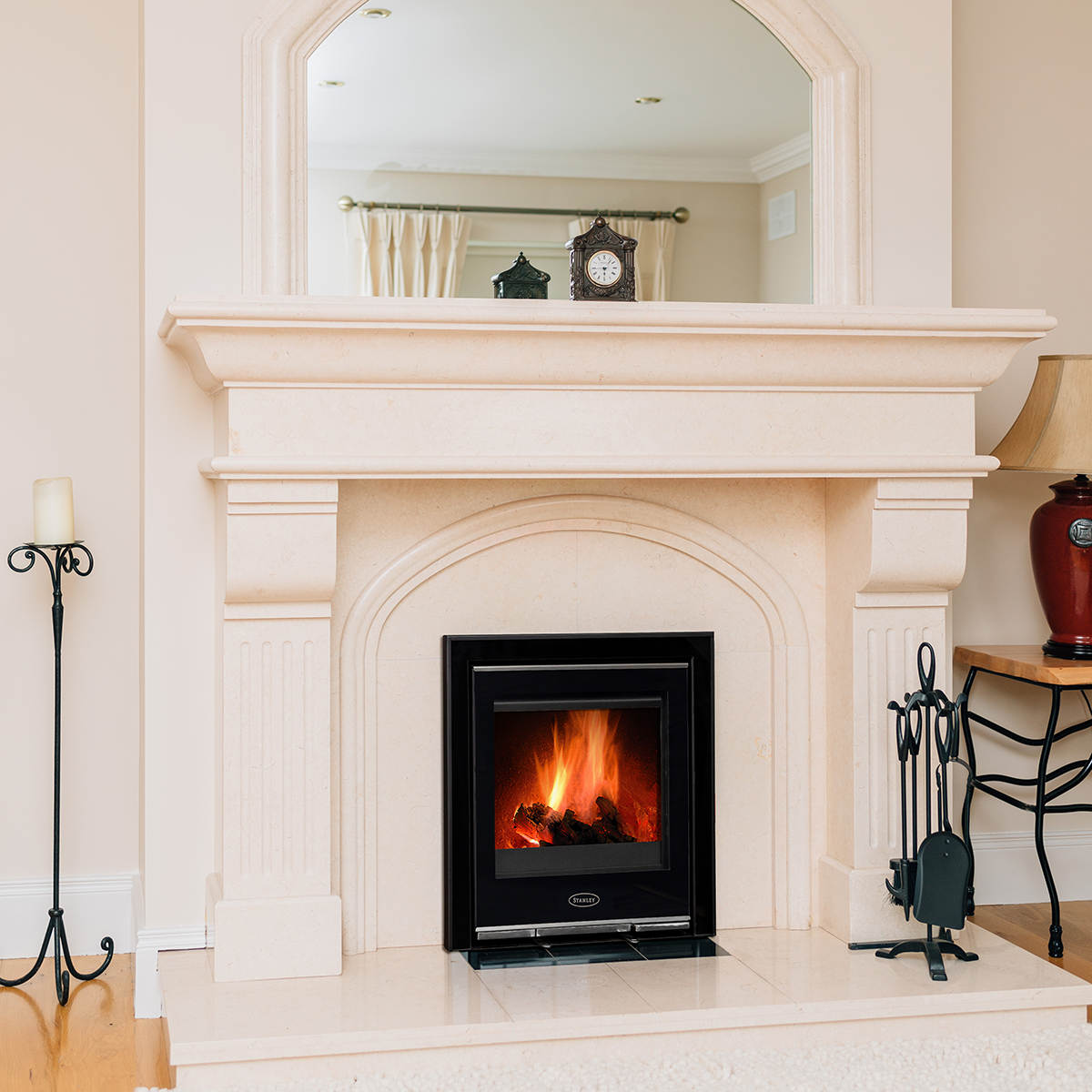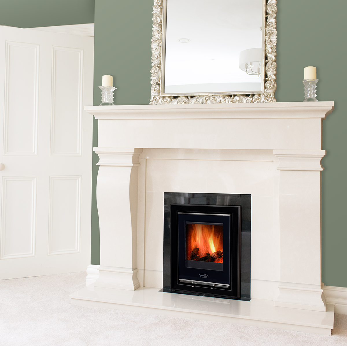 Stanly Solis I5 Cassette, High End Stove.  Complete Marble Fireplace, Chimney Lining and Installation Parts. Normally €4850.00 Now Only €3800 saving up to €1050.00 Choose from 20 different fireplace surrounds and let us know.